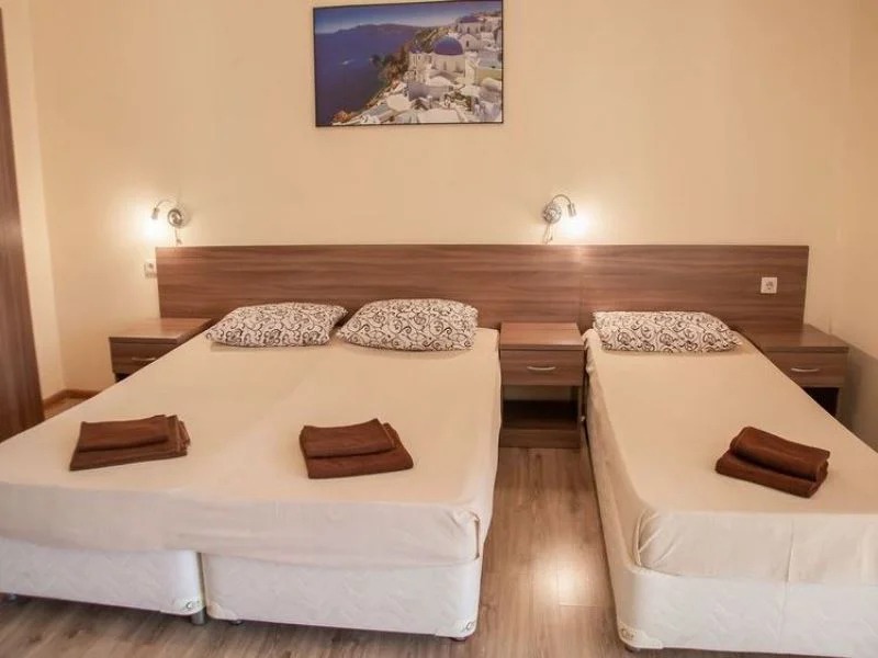 Уютный двухместный номер с современной отделкой, продуманный для комфортного отдыха. В номере две удобные кровати Springbox, которые можно поставить как вместе, так и отдельно, шкаф для вещей, прикроватные тумбочки, столик и стулья.